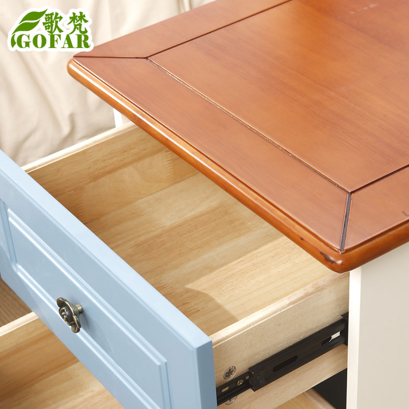 歌梵 床头柜 地中海美式乡村蓝色田园床边柜 储物卧室家具 品质保障 用料环保 质保5年--不单卖