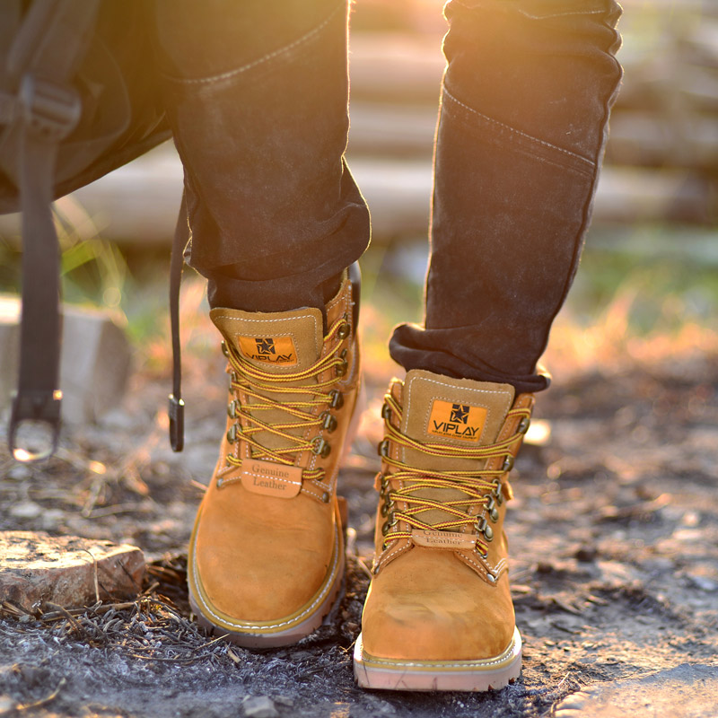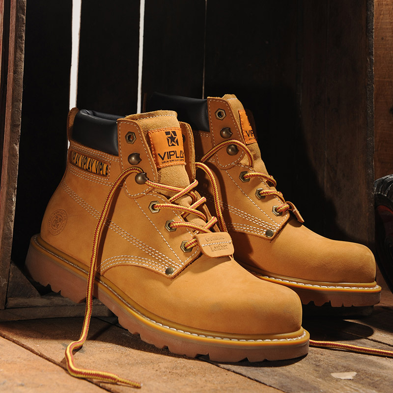 春季马丁靴男真皮男靴黄靴工装军靴韩版短靴沙漠靴高帮男鞋大黄靴 头层牛皮