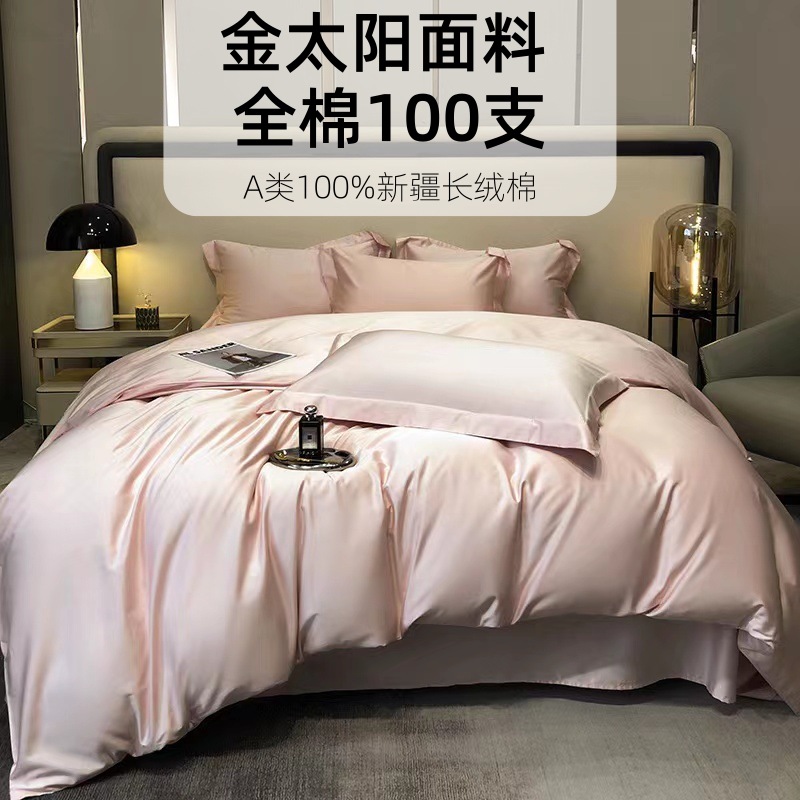 轻奢100支金太阳长绒棉四件套100%全棉贡缎床笠四件套棉 被罩床单
