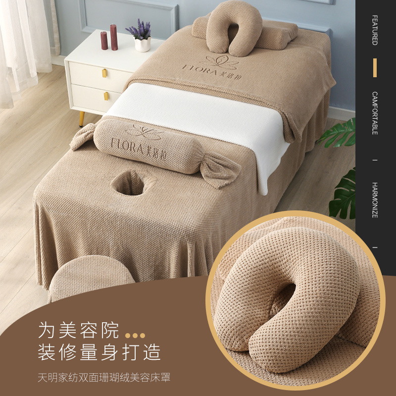 美容院床罩用品四件套床罩床笠全棉纯棉轻奢高级风四件套绒罩白色