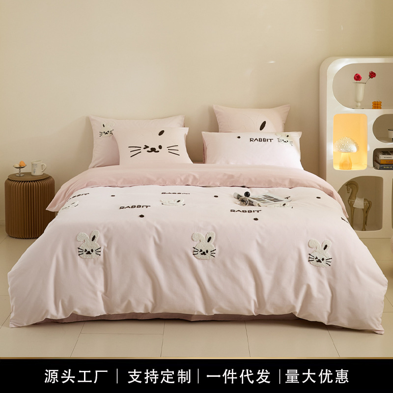 高端A类100S全棉磨毛四件套冬季纯棉毛巾绣被套床单床上